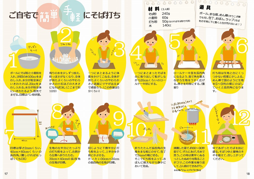 レシピ集には、手軽にそば打ちを試してみたい方向けのちょっとしたそばの打ち方ページも掲載されています。