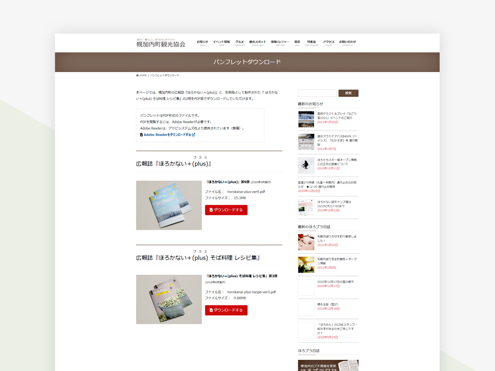 パンフレットは、幌加内町観光協会のウェブサイトにPDFが掲載されていますので、どなたでもダウンロードしてご覧いただけます。