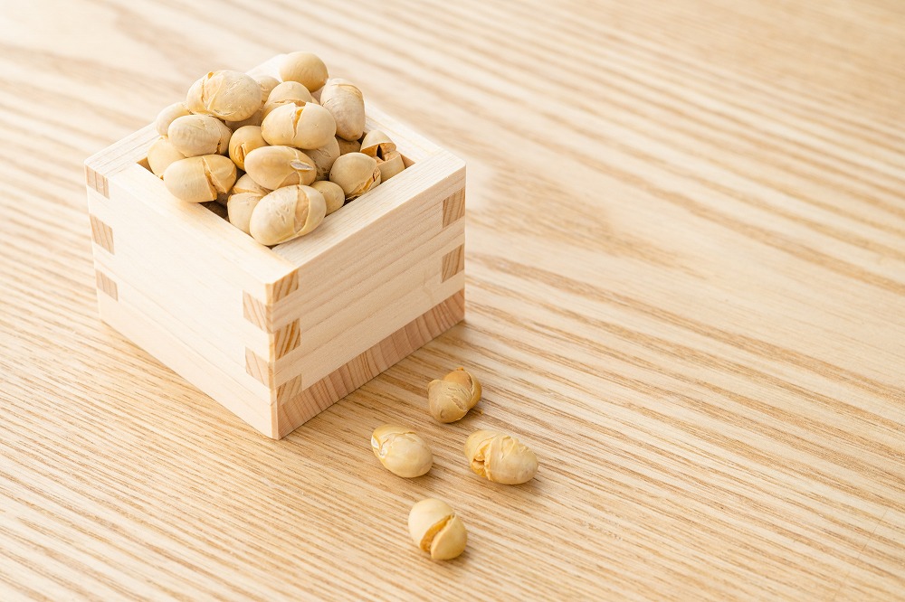 節分(2月3日)には、「鬼は外、福は内」と豆(いった大豆)をまいて、邪気を祓った後に、年齢の数だけ豆を食べて、1年間の幸せを祈ると言われています。