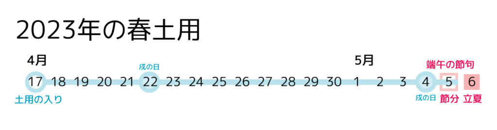 2023年は4月17日が土用の入り、5月5日が節分つまり土用明けとなります。(端午の節句でもありますね)