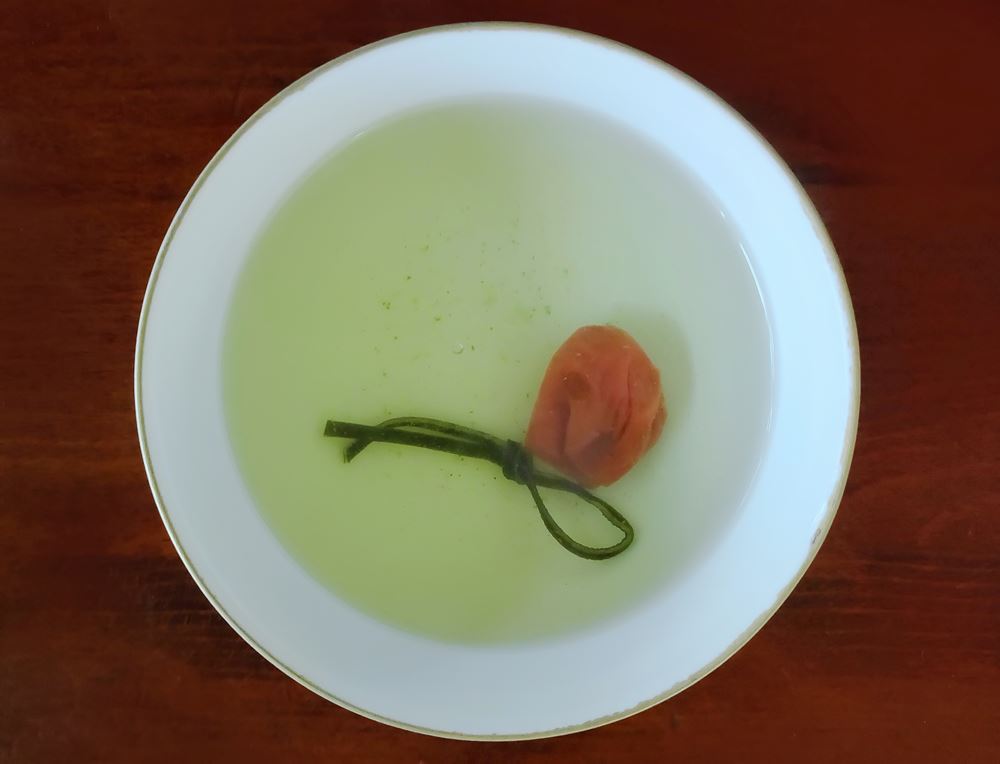 福茶とは、福豆を吉数の3粒入れ、さらに縁起を担ぎの昆布や塩昆布、梅干しなどを入れたお茶のこと。
