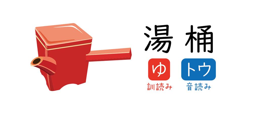 この「湯桶(ゆとう)」のように漢字2字の熟語の上の字を訓読み、下の字を音読みとする読み方を「湯桶(ゆとう)読み」と言い、日本語における熟語の変則的な読み方の一つです。