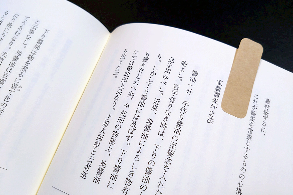 手作り醤油の至極念を入れたる物よし。若手造りなき時は、下りの醤油の上品を用ゆべし。近年、地醤油によろしき物あり。しかし下り醤油には及ばず。下り醤油にも種々有と云え共、▲此印の物極上、地醤油にては■此印上品なり。土浦大国屋と云者造り出すと云。