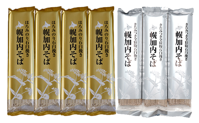 幌加内の独自品種ほろみのり使用の「金の乾麺」と、新品種キタミツキ使用の「銀の乾麺」をセットにしました。