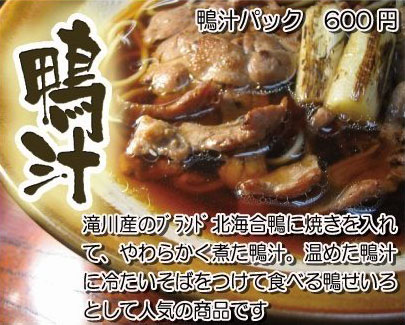 温めた鴨汁に冷たいそばをつけて食べる鴨せいろとして人気の商品です。