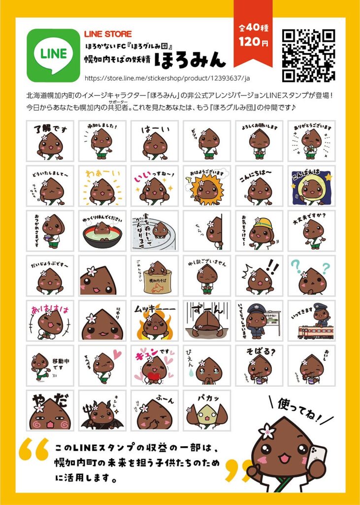 ほろみんLINEスタンプは、幌加内町内の有志による「ほろみんと一緒に幌加内町を盛り上げる活動」の一環として制作され、その活動主旨を表したチーム名が「ほろかないFC『ほろグルみ団』」です。